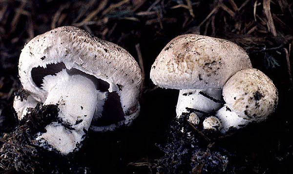 No staining reaction. Normal mushroom odor. KOH green. Well developed ring. Found deep in forests under conifers with dark vinaceous brown scaly caps. Species mentioned: Agaricus subrutilescens, thiersii |