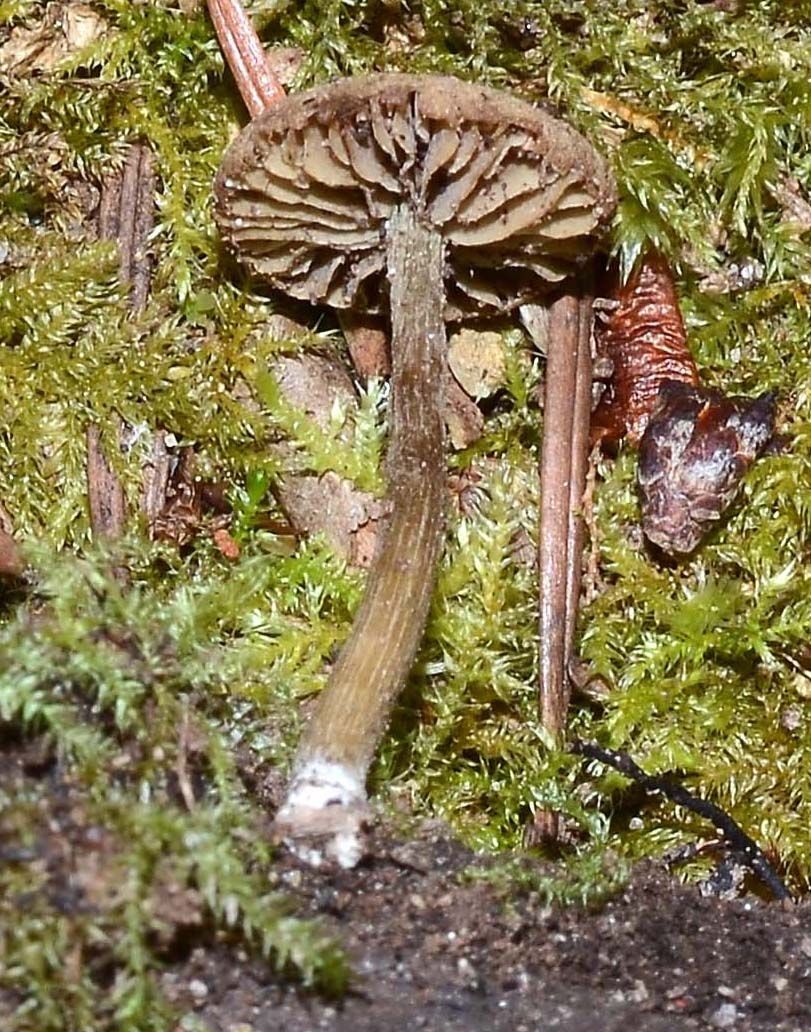 Simocybe centunculus EU - has shorter spores (<8u long versus 7-10u long). One WA sequence matches one EU sequence, so this may represent the real species. Simocybe 'haustellaris PNW01' - may have an eccentric stem and has wider spores (8-10 x 5.5-7u versus 7-10 x 4-5.5u). So far we have found a collection matching one possible concept of this EU species, but not matching another. Simocybe rubi EU is probably a newer synonym of the EU species. Simocybe 'haustellaris CA01' - seems more likely to have barely any stem at all and almost resemble Crepidotus. This is the other possible concept. They are not sister species. It has now been found in ID. We need to figure out which is the real thing, but it may be this one. Simocybe PNW02 - one WA collection and a few CA collections. Simocybe PNW03 - one ID collection, 5% different in ITS from S. centunculus. Simocybe centunculus © Matthew Koons, S. 'haustellaris PNW01' © Matthew Koons, S. 'haustellaris CA01' © Ed Barge Simocybe PNW02 © Harte Singer (from CA) and Danny Miller, S. PNW03 © Ed Barge |