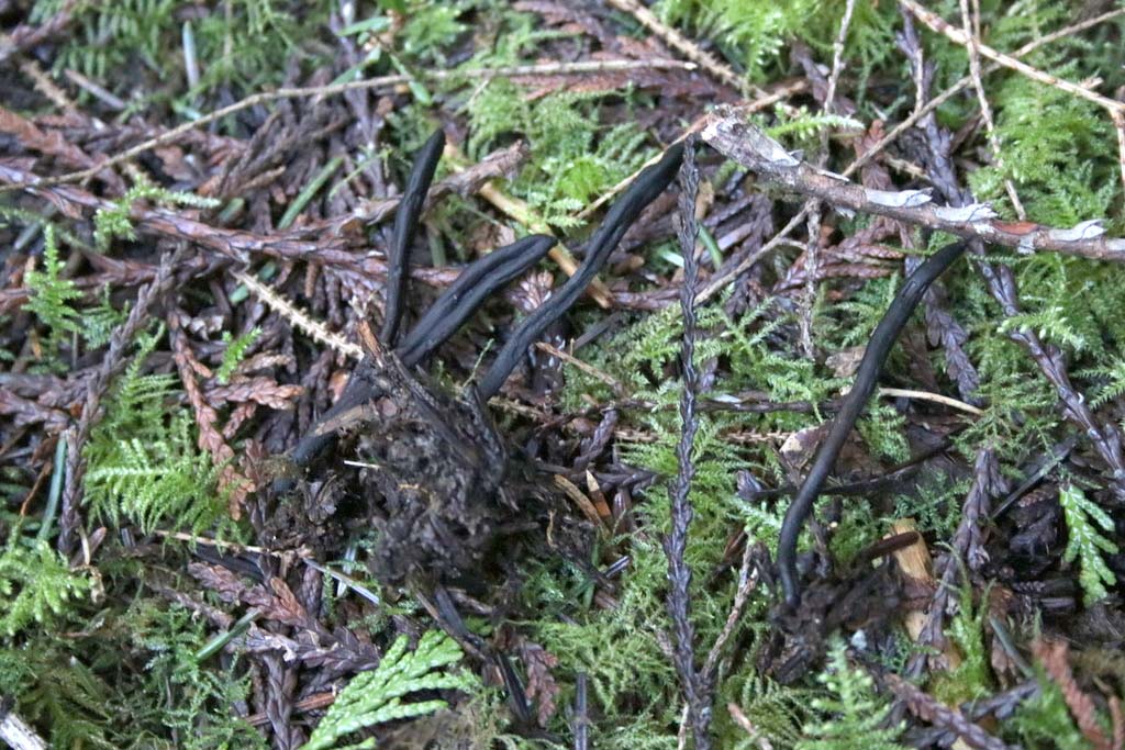 Geoglossum: Neither hairy nor viscid Sometimes brown Geoglossum 'fallax PNW01' - often (but not always) with brown tones (most others are black or almost black). G. fallax has 2 concepts in the EU, one of which occurs in the PNW. The one sequence I have found from NY, the type area, is 4 bp and 2 ambiguities different from our sequences. It's plausible we have the real thing, but for now I have given it a code. Geoglossum PNW06 - also brown and therefore resembling G. fallax (and closely related). I don't know how to tell it apart from PNW01. Always black Geoglossum sp. 'sphagnophilum-PNW02' - black, found in sphagnum moss, although the others can be too. This is a unique sequence that is unverified and should be looked for again. Geoglossum sp. 'sphagnophilum-PNW03' - PNW03 is 4 bp different than an EU sequence that may represent this EU species, and 7 bp different than PNW02. This species was not previously reported from the PNW before they were sequenced, and yet they seem to be the most least uncommon. Geoglossum sp. 'OR01' - a short but unique sequence close to G. sphagnophilum and PNW03 that is getting its own code for now. Geoglossum sp. 'glabrum-PNW04' - blackish. Some considered it a synonym of G. sphagnophila, but it appears that it isn't. Our OR and ID sequences are 2% different than an ENA sequence and 2% different than the closest EU type area sequence match, so it appears our species in the complex needs its own name. Geoglossum sp. 'CA06' - another species in the G. glabrum complex. Geoglossum sp. 'WA01' - Geoglossum sp. 'CA04' - one collection was (probably falsely) identified as G. nigritum EU. Geoglossum sp. 'PNW07' - Geoglossum cf umbratile EU - has been reported from the PNW but no collections match EU sequences yet. Perhaps reports of this represent one of the above species. Geoglossum sp. 'PNW06' © Matthew Koons, G. sp. 'sphagnophilum-PNW02' © Connor Dooley, G. sp. 'sphagnophilum-PNW03' © Jordan Gates (2 images) Geoglossum sp. 'OR01' © Connor Dooley, G. sp. 'glabrum-PNW04' © Michelle Keller-Pearson, G. sp. 'CA06' © iNaturalist user danieltayrien, C. sp. 'WA01' © Dan Morton Geoglossum sp. 'CA04' © Kendra Dedinsky, G. sp. 'PNW07' © Autumn Anglin |