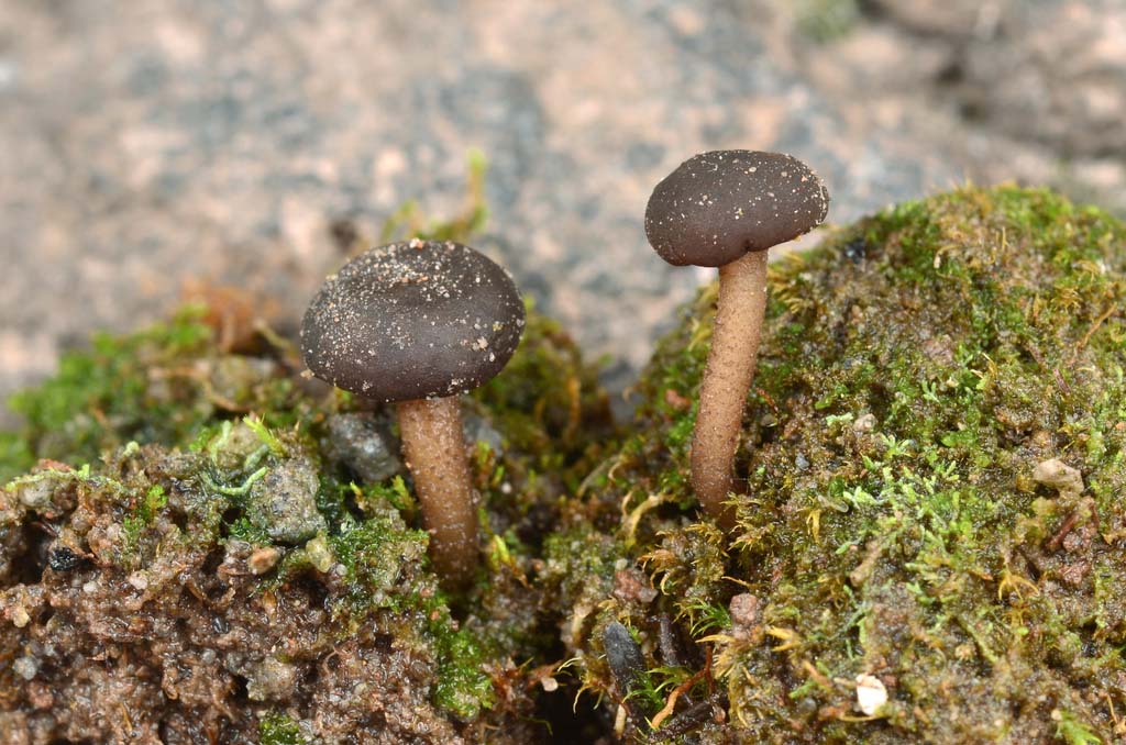 Hairy, viscid, or uniquely shaped Trichoglossum sp. 'hirsutum-PNW01' - blackish, covered in tiny hairs (unlike Geoglossum). The head may be variably shaped, sometimes elongated, sometimes more round. You may need a hand lens. Our PNW sequences differ from EU type area sequences. Trichoglossum cf velutipes NY - differentiated microscopically. We have no DNA from anywhere. Glutinoglossum glutinosum EU - is viscid and almost black. One WA collection matches the epitype sequence fairly well. Sabuloglossum monticola EU - not known from the PNW until it was sequenced from WA. These brownish black earth tongues only have a short stem, with the entire fruitbody being about 1cm tall. Sarcoleotia PNW01 - with a nearly spherical dark brown head and paler brown stem. Two OR sequences are 6% different in ITS from EU sequences of Sarcoleotia globosa EU, so our species probably needs a new name. EU sequences vary about 2% from each other, so there might be more than one species in the EU, but even if theirs is all one species ours is likely unique. CA has its own species too. Trichoglossum 'hirsutum PNW01' © Warren Cardimona, Glutinoglossum glutinosum © Matthew Koons, Sabuloglossum monticola © Connor Dooley, Sarcoleotia sp. 'PNW01' © Connor Dooley
