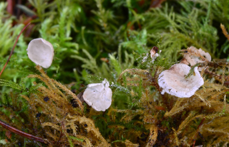 Arrhenia 'retiruga' - white to pale grey. Agaricales (Hygrophoroid).