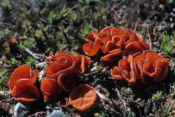 I am assuming that most cup fungi are saprophytic, but I don't know if that has been well studied. As with many of the smallest fungi, the seasons of fruiting are not reliably documented, so I am not going to try and fix a season to each species, but many can be found almost year round. Most are "ascos", but also included are the few small Basidiomycota on moss that more resemble cups than they do any of the Basidiomycota categories.