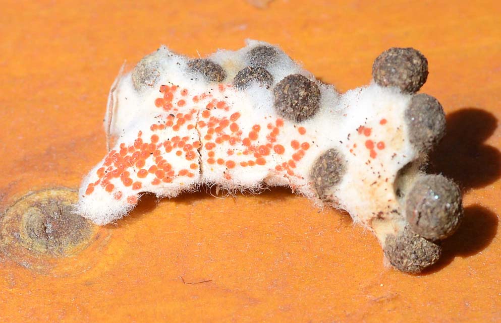 Byssonectria terrestris - many <5mm orange discs on a white mycelial mat. See other spp. in other habitats.