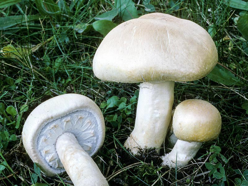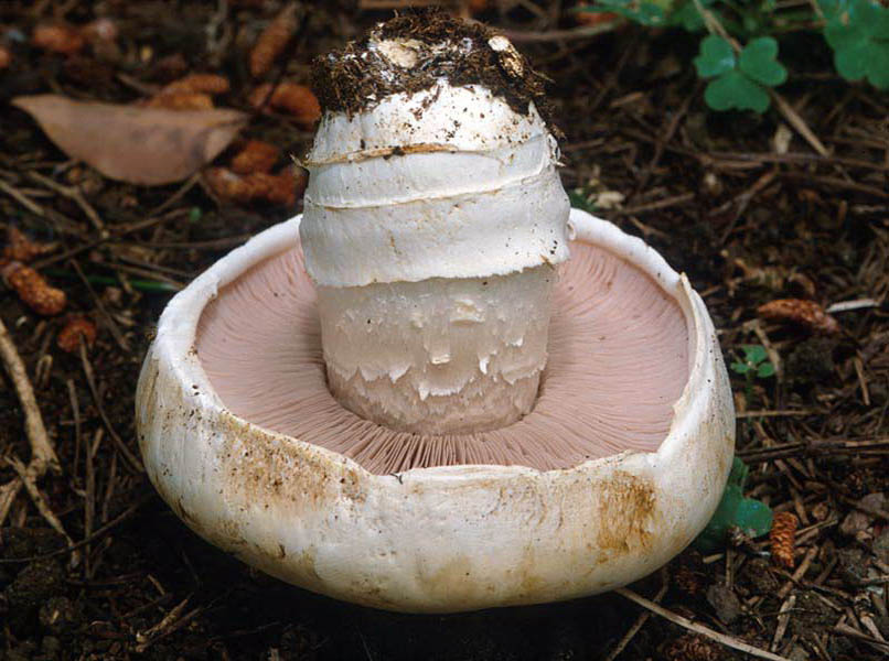 Agaricus are easily recognized by dark chocolate brown spores and free gills. As a bonus, they always have a partial veil that usually leaves a ring on the stem. Their stature is usually large (most reach 10 cm across, often 20 cm) although there is one group that usually stay 5 cm or less. Some are squat and stocky, with thick stems that are not much longer than the cap width. The caps are always dry and often fibrillose or scaly. The spores may turn pink before they turn dark chocolate and leave the gills, so a young specimen may have pink gills, but a spore print will always be dark chocolate. You can tell the subgenera apart by size, staining reaction (fast red, slow red, yellow or none) and odor (sweet almond, creosote or none). You may have to cut one in half and wait several minutes to see the staining reaction, which may only happen in certain places. Interestingly, this is the only group of mushrooms I know where the poisonous ones might smell or taste bad and the edible ones might smell or taste good. Except for Agaricus, that is never the case. The sweet odor and taste of some species is an interesting contrast to the usual savory flavours of mushrooms. Agaricus campestris was the first gilled mushroom ever named, back in 1753. Therefore, every gilled mushroom in the world used to be called Agaricus until they realized that was going to be too many for a single genus. Agaricus of North America by Rick Kerrigan is essential if you want to ID your Agaricus, as it contains the only modern comprehensive key. abundant common uncommon rare - colour codes match my Pictorial Key and are my opinions and probably reflect my bias of living in W WA. Rare species may be locally common in certain places at certain times. |