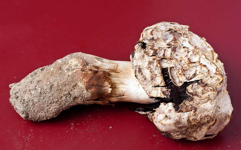 A quick or strong red staining reaction, stem almost as thick as the cap is wide and very short (very squat mushroom) that grows in salty areas and smells briny itself. Inrolled cap margin. KOH negative. Species mentioned: Agaricus bernardii |
