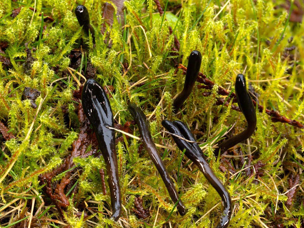 Hairy, viscid, or uniquely shaped Trichoglossum sp. 'hirsutum-PNW01' - blackish, covered in tiny hairs (unlike Geoglossum). The head may be variably shaped, sometimes elongated, sometimes more round. You may need a hand lens. Our PNW sequences differ from EU type area sequences. Trichoglossum cf velutipes NY - differentiated microscopically. We have no DNA from anywhere. Glutinoglossum glutinosum EU - is viscid and almost black. One WA collection matches the epitype sequence fairly well. Sabuloglossum monticola EU - not known from the PNW until it was sequenced from WA. These brownish black earth tongues only have a short stem, with the entire fruitbody being about 1cm tall. Sarcoleotia PNW01 - with a nearly spherical dark brown head and paler brown stem. Two OR sequences are 6% different in ITS from EU sequences of Sarcoleotia globosa EU, so our species probably needs a new name. EU sequences vary about 2% from each other, so there might be more than one species in the EU, but even if theirs is all one species ours is likely unique. CA has its own species too. Trichoglossum 'hirsutum PNW01' © Warren Cardimona, Glutinoglossum glutinosum © Matthew Koons, Sabuloglossum monticola © Connor Dooley, Sarcoleotia sp. 'PNW01' © Connor Dooley