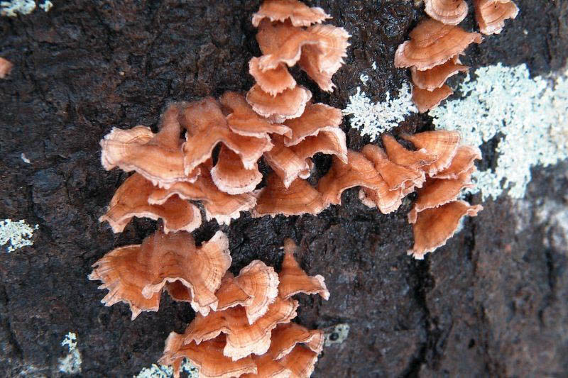 orange like S. hirsutum) and often found on smaller pieces of wood.