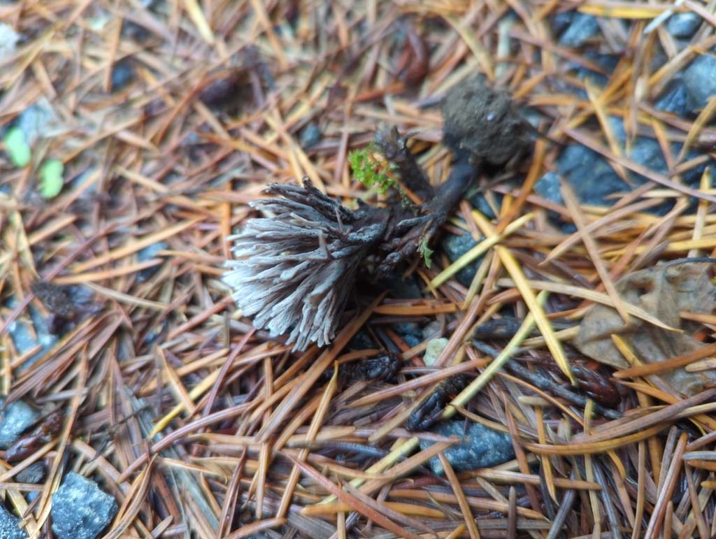 Clavarioid corals with tubular branches Thelephora 'palmata PNW01' - stinks to high heaven. Our local sequences are quite distinct from EU sequences of this EU species, so ours is very likely in need of a new name. Thelephora 'palmata PNW07' - one BC sequence is 1.5% different. We need to look for it again and see if it is a distinct species. Thelephora 'palmata PNW01' © Jonathan Frank Thelephora anthocephala EU - the name given to most collections with tubular branches that do not stink and are not very small. this highly variable fungus has several described varieties, and several genetic species going by this name in Europe. We appear to have 3 species in this group, with none of them matching species found in the EU, so ours probably all need new names. Thelephora 'anthocephala PNW03' - our BC photo shows this species has branch tips that are especially thin and spiky. Thelephora 'anthocephala PNW05' - no photo or description yet. There is one sequence of a mushroom in this group that appears to be a distinct 6th species, however 5.8s is different than in its closest relatives, so I suspect the sequence is dirty. Until I see that sequence again, I will not yet claim that there is a 6th species. Thelephora 'anthocephala PNW08' - one WA sequence matches one EU sequence of one of the 4 or so possible concepts of T. anthocephala. Thelephora scissilis WA - a smaller mushroom, described from WA and MO with the type chosen from WA. A WV sequence of a collection matching the description of T. scissilis is 2% different in ITS than an OR sequence of T. 'scissilis PNW04'. This leads me to suspect that PNW04 could be T. scissilis, and the east coast species may actually be distinct. Thelephora 'scissilis PNW04' - this was either small or very young. It's possible this one is T. scissilis, above. Thelephora caespitulans PA - also smaller. Corner wondered if it was actually just a small T. anthocephala, but since that is a species group, reports of this need to be investigated to see what it actually is. It is very poorly understood. No DNA yet. Thelephora 'anthocephalus PNW03' © Anna Bazzicalupo, T. 'anthocephalus PNW08' © Noah Siegel, T. 'siscillis PNW04' © Stephen Russell
